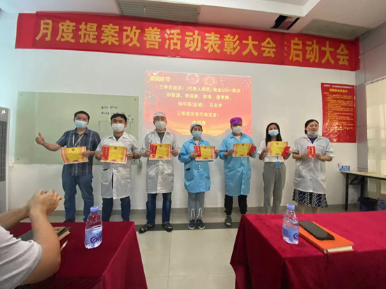 In March, a total of 172 proposals were received from employees. After review and selection by various review groups, 1 first prize, 3 second prizes, and 6 third prizes were finally selected. The members of the review team are the outstanding proposal improvement project personnel. Award certificates of honor, bonuses, and take group photos.