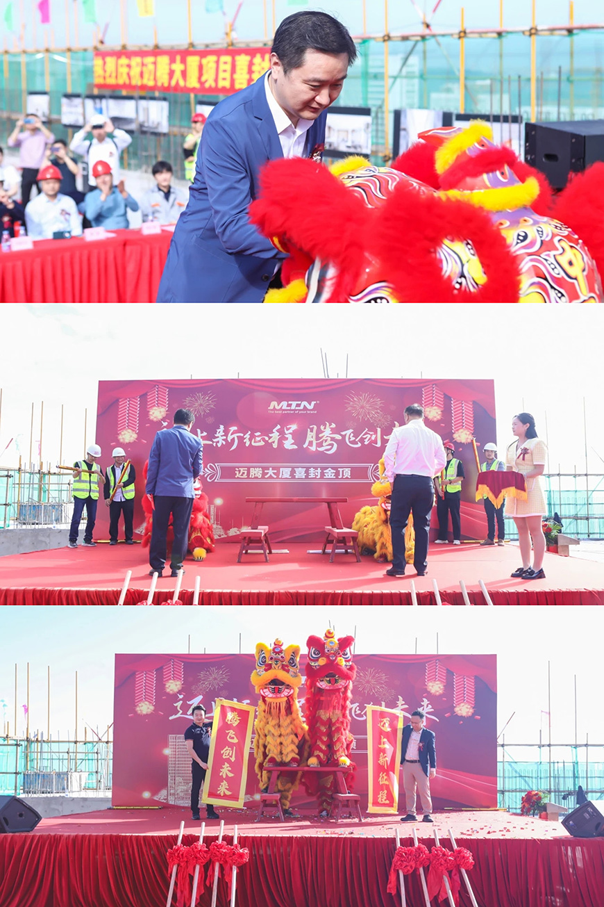 On December 10th, MTN headquarters building held a topping-out ceremony in Baolong Science and Technology City. With the sincere cooperation of all the brother units, the Group's General Manager Mr. Huang and Deputy General Manager Mr. Li led the company's executives, managers and high-potential talents to join hands with all the participating units and friends from all walks of life who have been continuously paying attention to and supporting MTN to witness the glorious topping out of MTN's headquarter building.