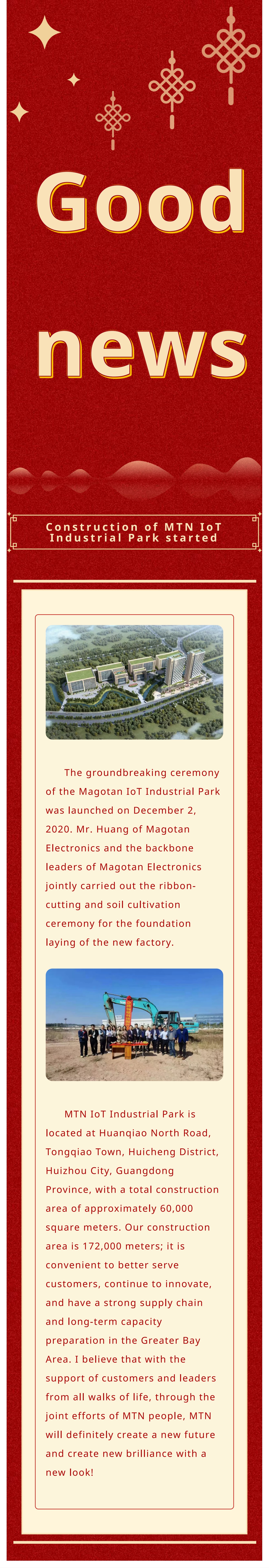 good news! Congratulations to the start of construction of MTN IoT Industrial Park!